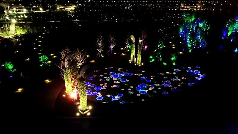 为更好地实现“生态游赏、商务商贸、文化娱乐、休闲健身于一体”的目标,该公园打造了一系列光影互动项目,向市民游客免费开放。